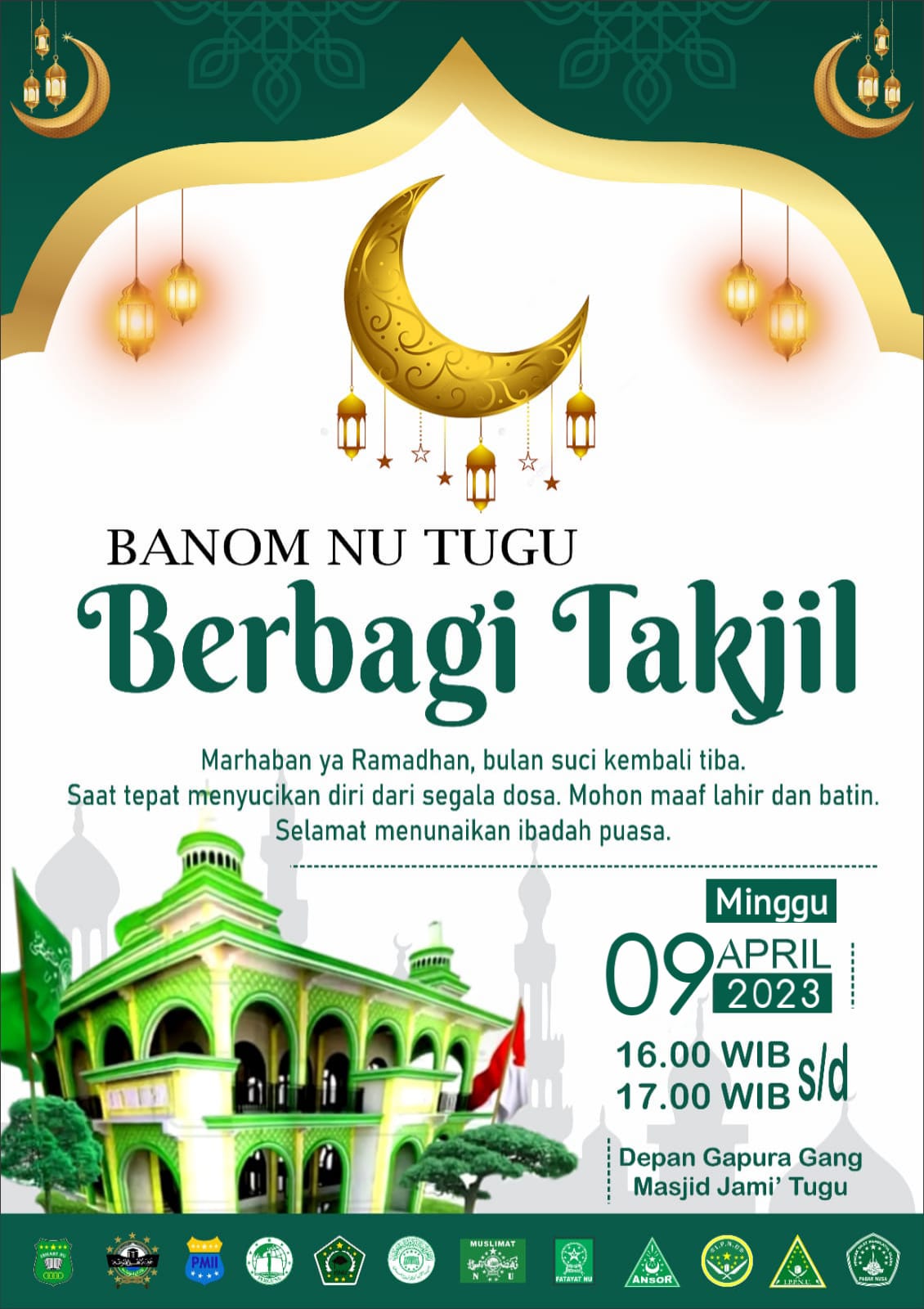 Desa tugu yang berdekatan dengan pondok pesantren Bustanul Hikmah ini mempunyai Banom yang Antusiasme dan semangat jam’iyah sangat tinggi patut menjadi cerminan dan teladan. Dalam rangka menyambut harlah Gerakan Pemuda Ansor ke 89 dan Fatayat NU ke 73 , dua organisasi kepemudaan terbesar di Nusantara ini yang tepat sama-sama lahir di tanggal 24 April menggelar kegiatan diantaranya adalah Bagi-bagi takjil di sepanjang jalan Raya Mantup Lamongan.