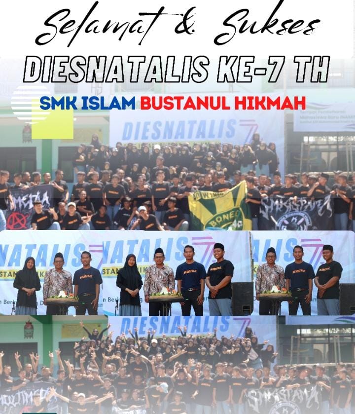 Dumpiagung, SMK Islam Bustanul Hikmah pada 20/12/22 Melangsungkan rangkaian puncak dies natalis SMK Islam Bustanul Hikmah ke-7. Acara puncak tersebut dilaksanakan di lapangan outdoor Bustanul Hikmah.. Kemeriahan Pada Acara puncak tersebut dihadiri seluruh siswa siswi dan civitas akademika SMK Islam Bustanul Hikmah Turut hadir juga Alumni yang turut mengisi rangkaian kegiatan tersebut.