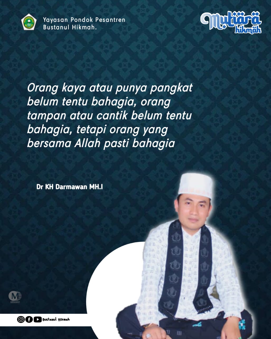 Ketenangan dan kebahagiaan yang sebenarnya hanya akan didapatkan ketika kita bersama dengan Allah ketika bersama dengan Allah maka kebahagiaan ketenangan akan didapatkan, namun ketika kita sedang jauh dari Allah maka yang di dapatkan adalah kesengsaraan, kegelisahan, kegalauan, kesumpekan, dan kesedihan. Maka sering seringlah untuk membarsamahi Allah kapanpun dimana pun dan dalam kondisi apapun agar diri dibahagiakan dan diberikan ketenangan oleh Allah SWT.