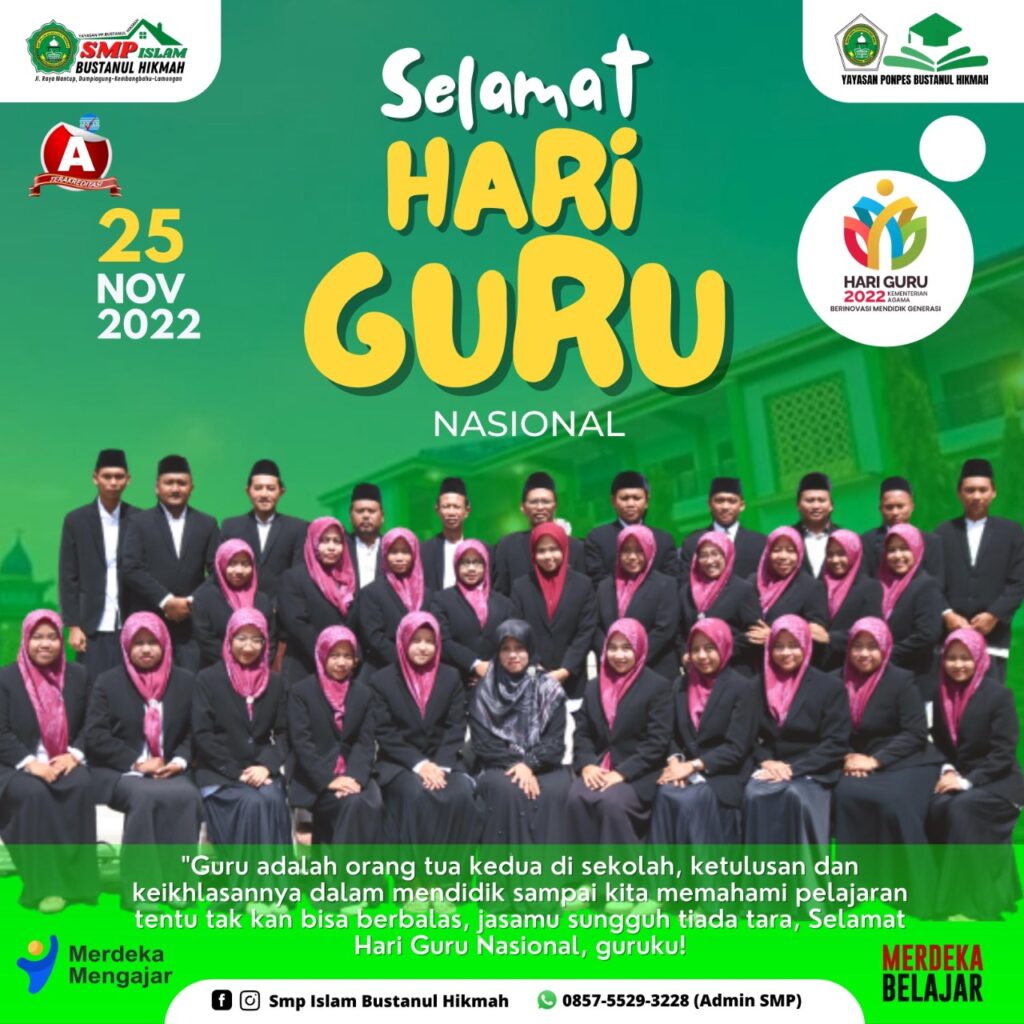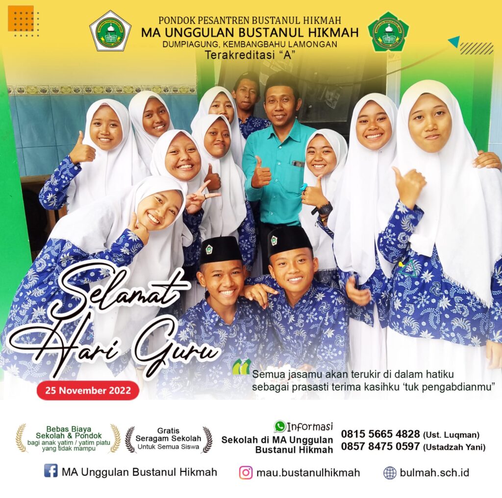 Kembangbahu– Dalam memperingati hari guru nasional yang diperingati setiap tanggal 25 november,Yayasan pondok pesantren Bustanul Hikmah mengadakan berbagai acara yang dilaksanakan disetiap lembaganya.acara peringatan hari guru dimulai tepat pukul 08.00 WIB berada Gedung dan kelas masing masing