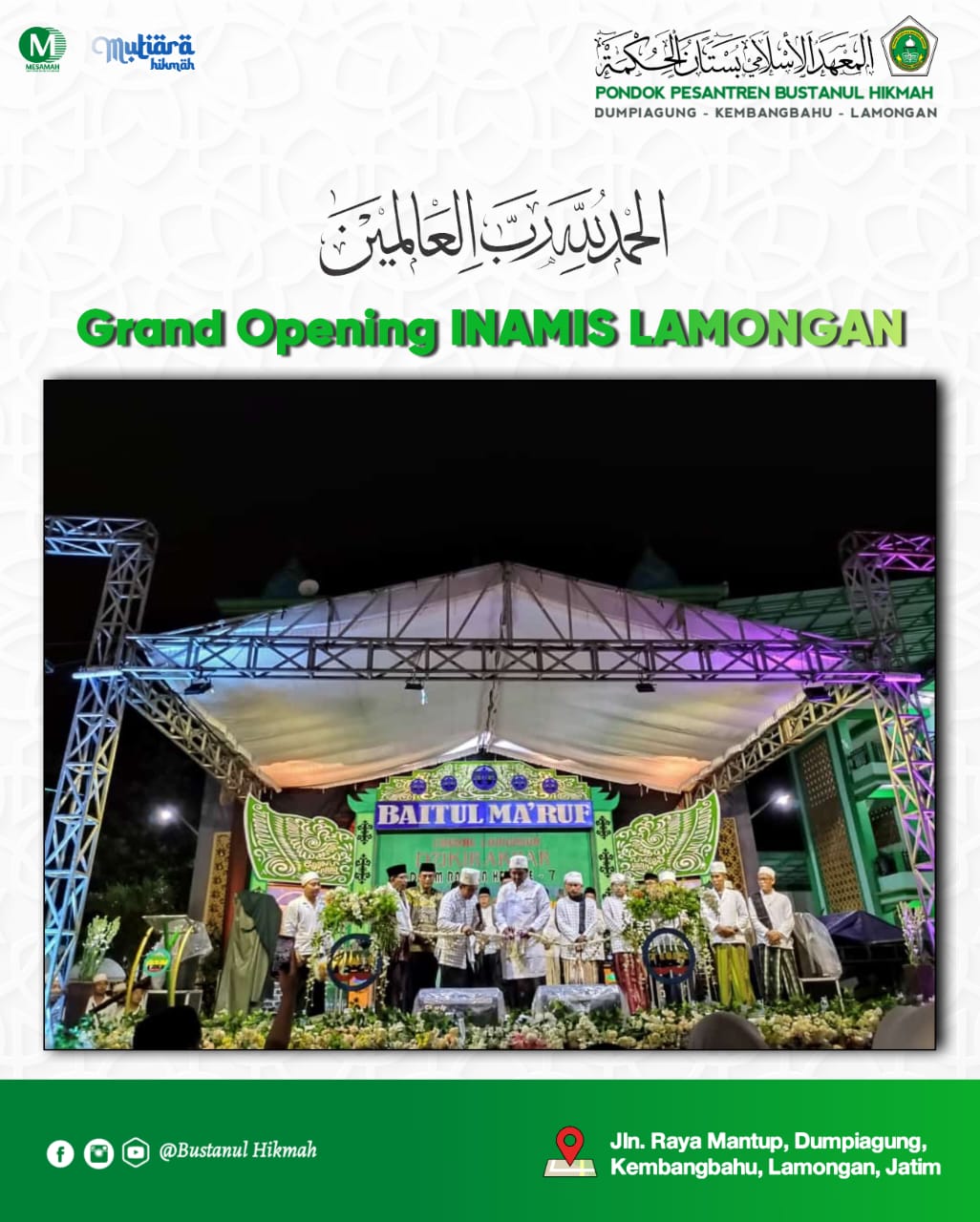 Selanjutnya Grand Lunching INAMIS ditandai dengan pemotongan tali dililit melati oleh KH Rohmatullah Romadhon diiring tholaal badru dan penurunan benner INAMIS seraya tepuk tangan yang meriah oleh para hadirin, dilanjutkan dzikir Bersama yang langsung di pimpin oleh beliau sebelum dimulai dzikir dalam sambutan singkat, beliau mendoakan semoga INAMIS di tegak berdirikan, disukseskan dan di jayakan oleh Allah SWT