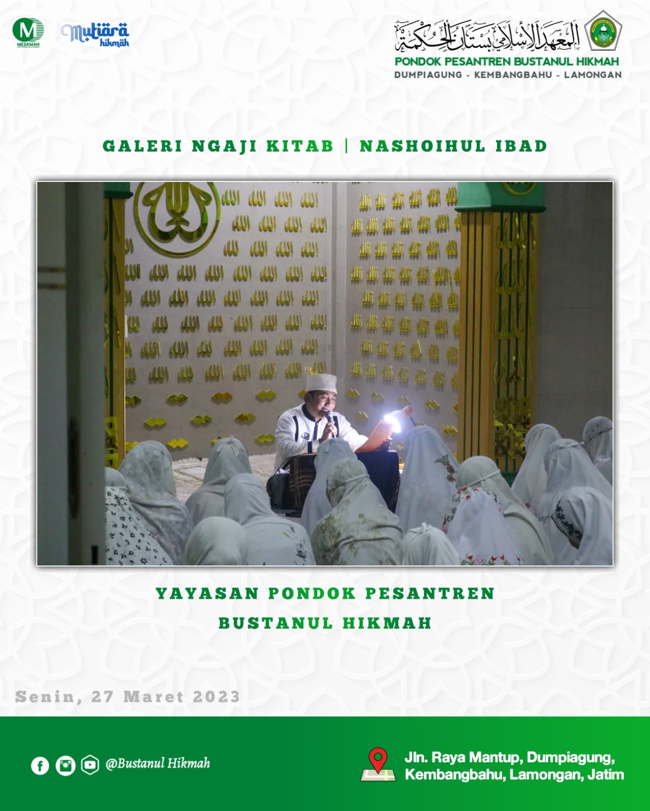 Lamongan (bulmah News) – Pondok Pesantren Bustanul Hikmah, Kabupaten Lamongan, Jawa Timur mengadakan pengajian kilat selama Ramadhan 2023 dengan beberapa kitab kuning.